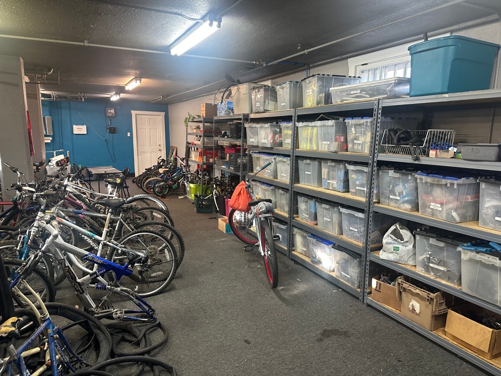 On the nights we see new faces come in, or returning clients whose bikes have been destroyed or stolen, we will head into the back of the shop and look for something we might be able to fix up by the end of shop hours for that person. We use our collection of donated bikes and parts or parts taken from bicycles that could not be salvaged.