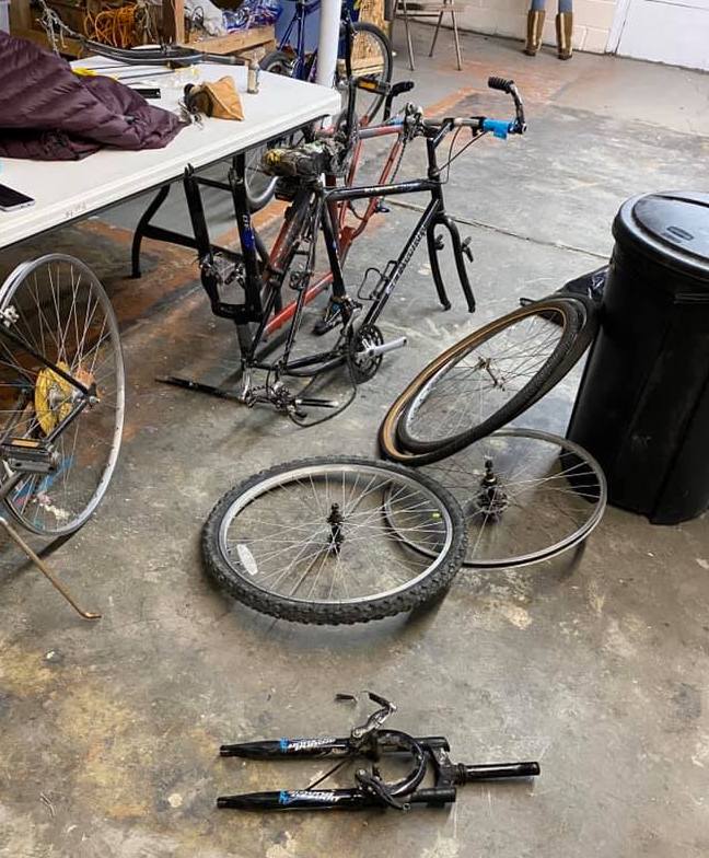 We cannot use: bikes with damaged/bent frames, bikes older than ~1985, bikes with uncommon wheel sizes (650c, 27×1 1/4, etc), bikes with significant corrosion, tandems, non-working eBikes, or anything you have to really think twice about donating vs scrapping.